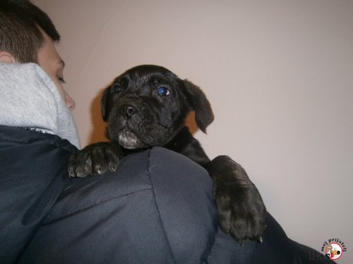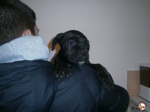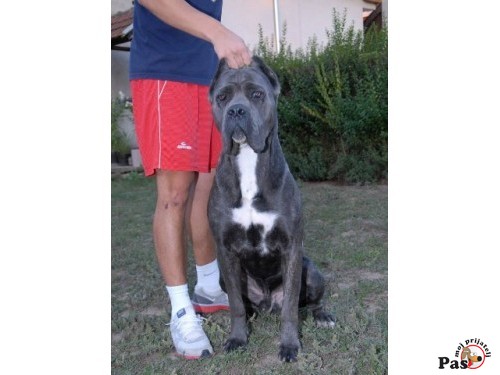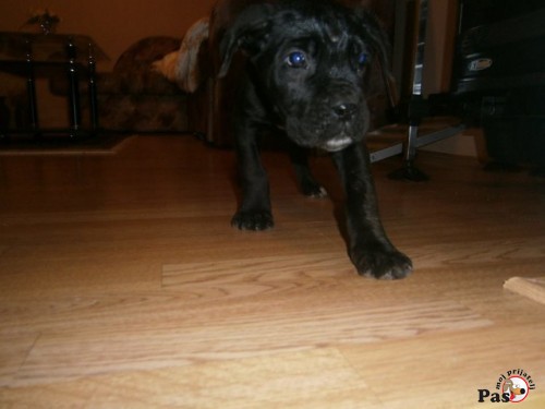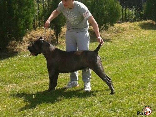 Na prodaju prvobirano crno, musko stene CANE CORSO, staro 2 meseca, izlozbenog kvaliteta od vrhunskih roditelja. Stene je najvece u leglu od 10 steneta. Veoma jakog kostura i krupnih kostiju, sa izrazito lepom i krupnom glavom. Ocisceno od parazita, vakcinisano i revakcinisano. Otac ChSrb, GrandChSrb AZKABAN DA FORESTA NERA (mnogima poznat pas, slike mozete videti ovde). U njegovim papirima su sve sampionski psi poput (Imperial Royal Flash iz Dinastii Chempionov, Amba Corso imperium, Sforza Heron, Viktor Strajano, Nerone Dell' Antico Cerberus, Ares Di Casa Cesaro i mnogi drugi)
