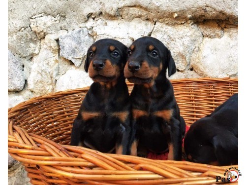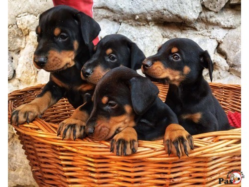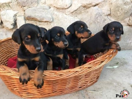 Stenci doberman stari mesec dana za rezervaciju. 5 zenki i 5 muzjaka. Stenci su sa papirima. Preuzimaju se sa kupiranim usima i repom. U opisu oglasa su i slike roditelja.