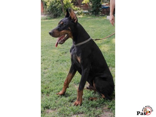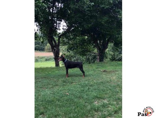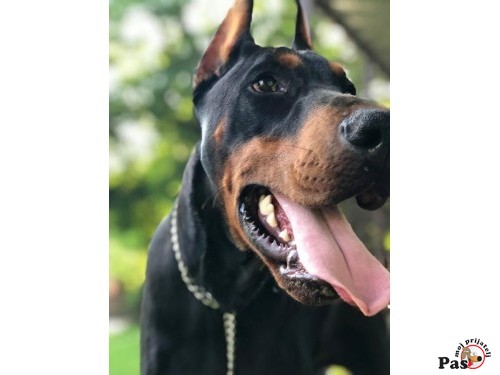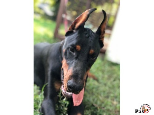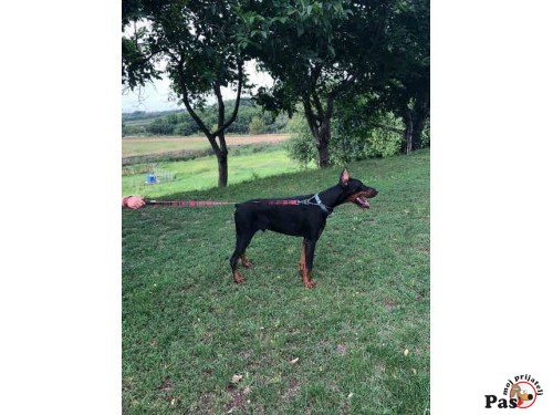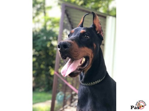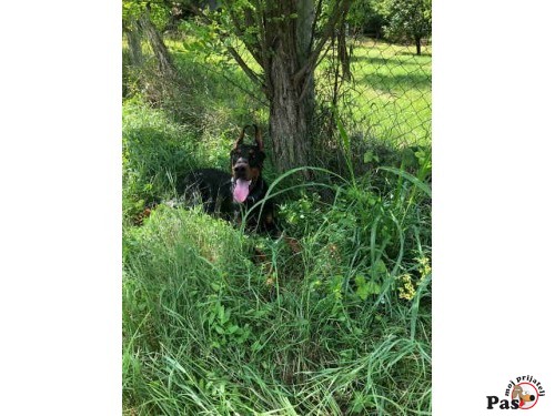 Enzo, crni DOBERMAN 31.10.2017./10 meseci, veoma dobar karakter, blag sa decom, zdravstveni testovi. Roditelji: Cowboy Lucky Luck di Altobello x Her Highness Helena Ira od Telepa