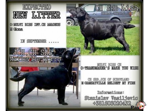 LABRADOR RETRIVER stenci izlozbenog potencijala. OtacJCH,CH Maleville Zoro, najtrofejniji labrador u 2012 godini. Majka CH SRB, stenci su vrhunski odnegovani, ocisceni od parazita i vakcinisani