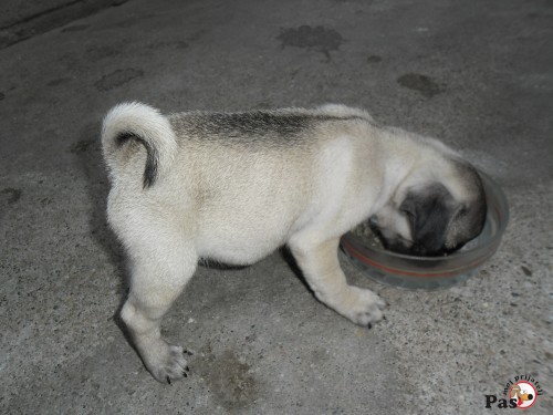 Mops, ostalo još jedno muško štene, bež boje, staro dvaipo meseca. Štene je zdravo, veselo, naviknuto na granule, očišćeno od parazita i vakcinisano.