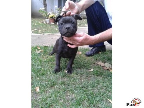 Stafordski Bull terier, tri muska steneta, ostenjenja 12.08.2014. Ocisceni od parazita, vakcinisani I revakcinisani. Otac:Black-mail Daffodil Yellow(L-2-HGA-Clear) (Sampi